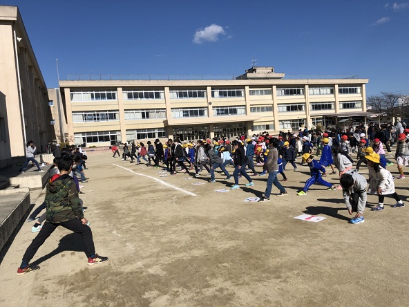 2/7(水)児童集会で縦割り大縄大会を行いました。