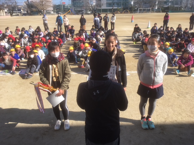 おめでとう!体育委員長さんから表彰をしてもらいました。