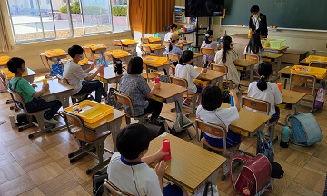 ※他校の児童も写っているので、ぼかしてあります。