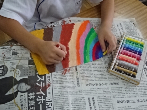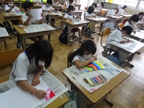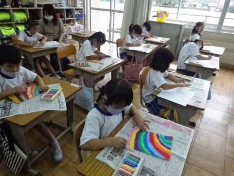3年生 図工の作品バックを写真にとって先生におくり、互いにタブレット上で鑑賞できるようにしました。