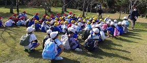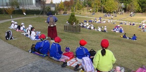 秋晴れの中、低学年の子どもたちが遠足に出かけました。