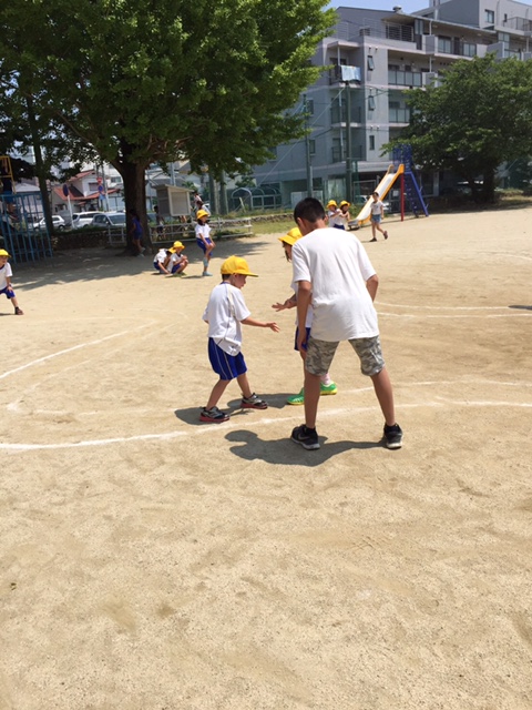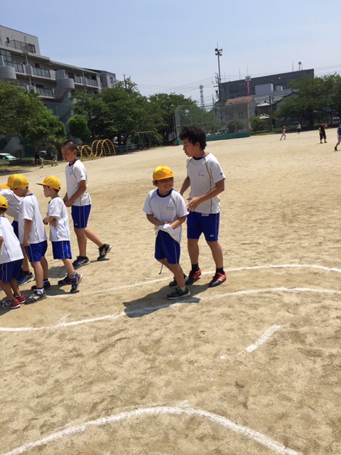の子どもたちがグランドに入れた砂を練習前に均して、グランドを整