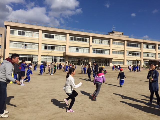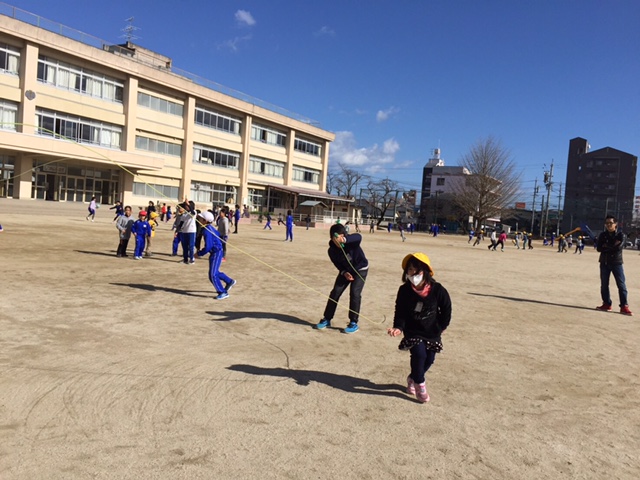 また、縄を回す高学年の子たちも、跳びやすいように縄を回したり、声をかけたりしていました。
