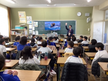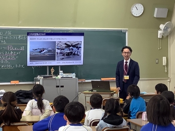 今日の3・4限目、三重県雇用経済部産業イノベーション推進課の鈴木さんに来ていただき、2年生を対象に「空飛ぶクルマ」の話をしていただきました。そもそも空飛ぶクルマとは何か?車ではなく「クルマ」と書くのは何故か?どんなふうにクルマが飛ぶのか?ヘリコプターとの違いは?などなど大変興味深い内容ばかりで、子どもたちは鈴木さんの話に一つ一つ反応していました。2年生の子たちが大きくなった頃には、空飛ぶクルマが行き交う時代になっているかもしれませんね。