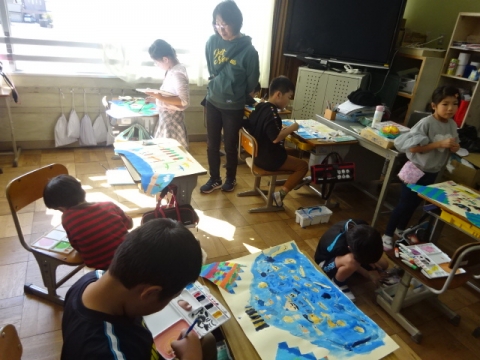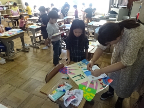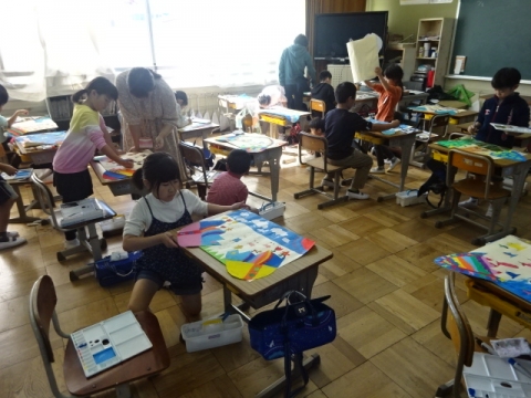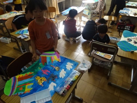 3年生 図工の作品バックを写真にとって先生におくり、互いにタブレット上で鑑賞できるようにしました。
