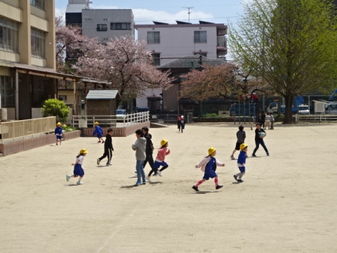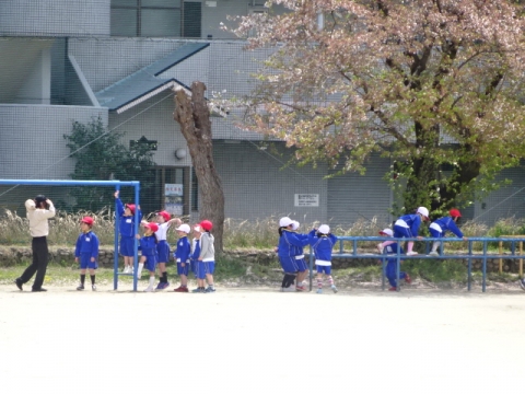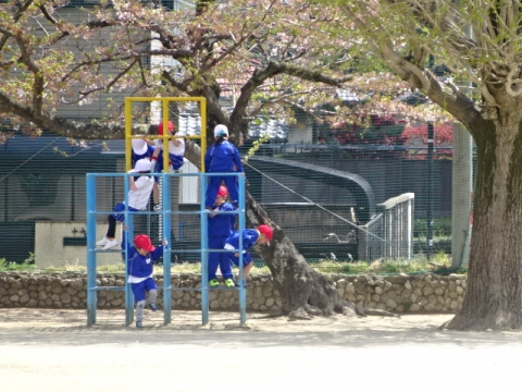 運動場の桜も木によっては5分咲きぐらいになってきました。