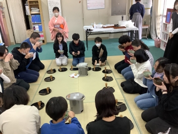 今日はPTA主催の、子どもたちと保護者の皆様とが一緒に体験しながら楽しむ「ふれあい行事」が行われました。1年「言葉の世界&なごみアート体験」2年「唐人踊り」3年「マジックショー」4年「科学教室」5年「伊勢型紙」6年「茶道」と、どの学年も趣向を凝らしたイベントを行っていただき、子どもたちも大喜びでした。午後は「ふらっと大門・丸之内 未来のまちづくり」に3~6年生が参加し、ステージでは金管バンドクラブが演奏を行いました。多くの保護者の皆様にお越しいただき、また活動にご協力いただきましたPTAの皆様、金管バンドサポーターの皆様に心から感謝致します。子どもたちにとって充実した一日となりました。