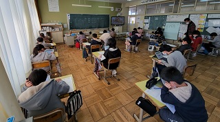 5年生が国語、算数、理科のみえスタディチェックに挑戦しました。
