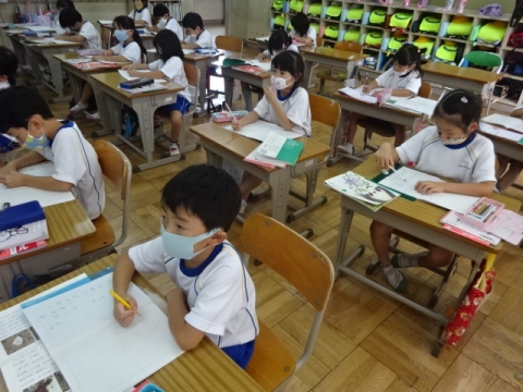 月曜日のお別れ式に向けて、1年から4年生が呼びかけや式の流