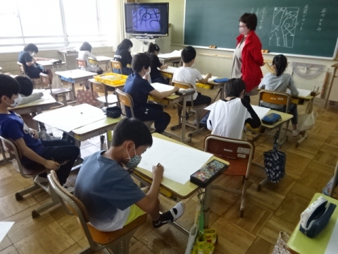 3年生 図工の作品バックを写真にとって先生におくり、互いにタブレット上で鑑賞できるようにしました。