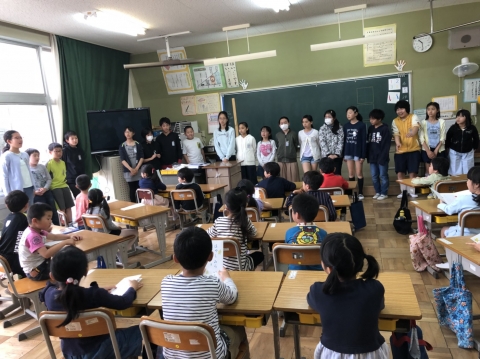 卒業式には出席しない1年生から4年生が、6年生とのお別れ式を