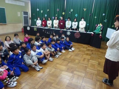 図書ボランティアさんにお世話になって、先週に引き続きクリスマスのお話を読んでもらい、ハンドベルの演奏も聴かせてもらいました。学年をとわずたくさんの子が集まりました。