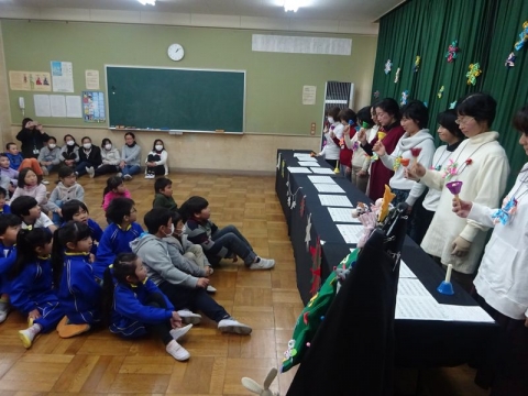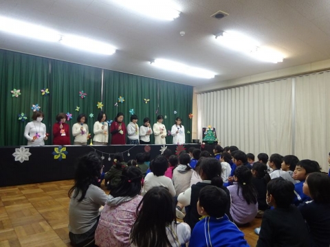 卒業式には出席しない1年生から4年生が、6年生とのお別れ式を