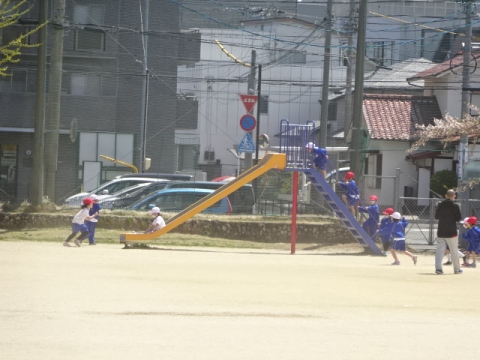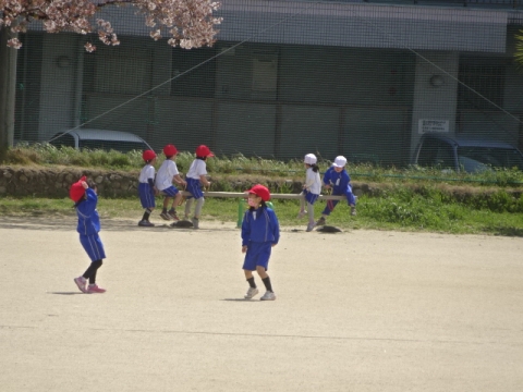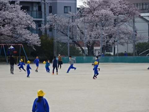 運動場の桜も木によっては5分咲きぐらいになってきました。