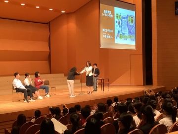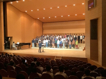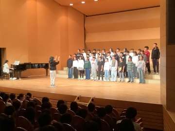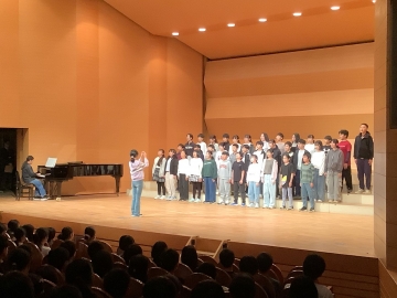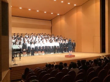 今日の午後、リージョンプラザお城ホールにて、西橋内中の3年生、養正小・新町小の6年生が一堂に会しての音楽発表会、人権イラスト・標語の表彰、そして人権コンサートが開催されました。この催しは同じ中学校区の児童生徒が司会・進行役を務め、各校の音楽発表を聴き合った後、人権に係る表彰式・講演会を保護者・地域の方々も一緒に参加するという、この地域ならではの学校行事です。養正小学校の子どもたちの歌声はとても素敵で子どもたちの表情も自信に満ちあふれていました。他校の発表も素晴らしく、一緒に幸せな時間を過ごすことができたと思います。