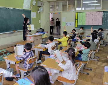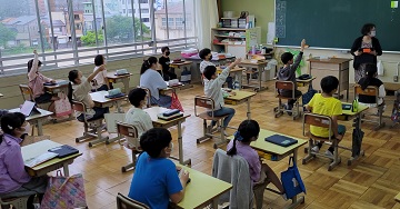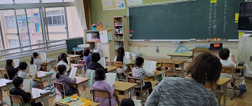 ※他校の児童も写っているので、ぼかしてあります。