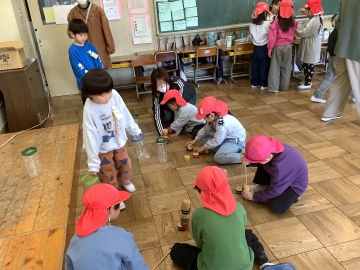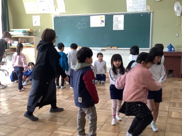 先週1月30日(金)は近隣の幼稚園や保育園、こども園の子どもたちを本校に招待して1年生と架け橋交流を行いました。2学期に地域の方々から教えていただいた昔の遊びを、今度は1年生から園児たちに優しく教えながら一緒に昔の遊びを楽しんでいました。1年生の子どもたちが少しお姉さんお兄さんになって、園児たちに分かりやすく笑顔で教えてくれている様子を見て頼もしく思いました。