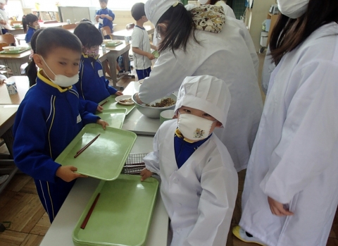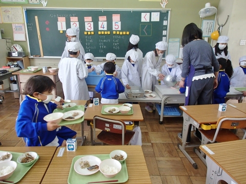 津市では、卒業生への思いを込めて、初めての給食、最後の給食に