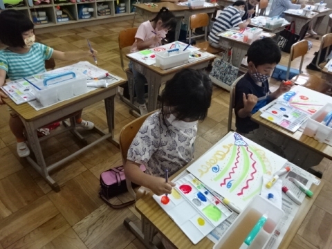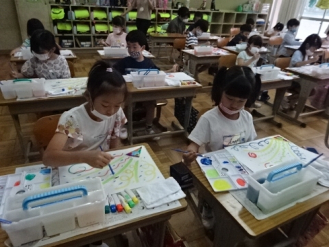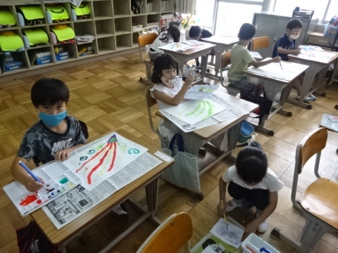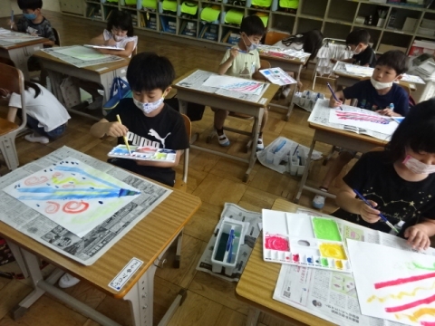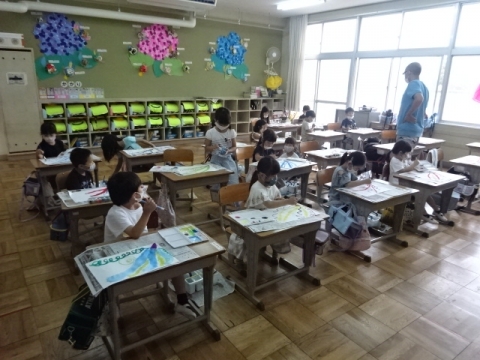 3年生 図工の作品バックを写真にとって先生におくり、互いにタブレット上で鑑賞できるようにしました。