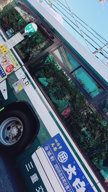 バス停でバスを待っています。余裕ですね。ちなみに、「エビカニクス」を踊っています(*^_^*)