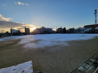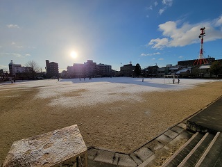 養正小学校の運動場にもうっすらと雪が積もりました。