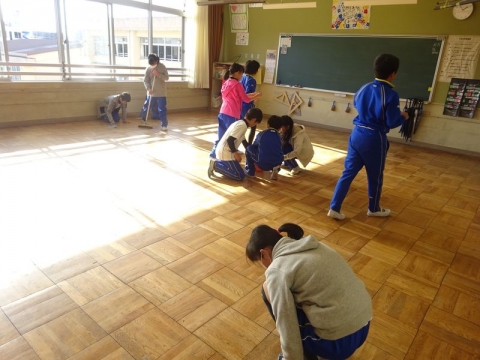 すみずみまでしっかりそうじをして、5,6年生はワックスかけもがんばりました。