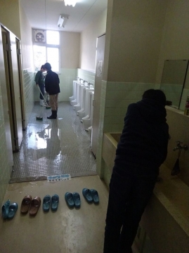 校区でも、道路が冠水したり、水に流されてきたものが道路に落ちて
