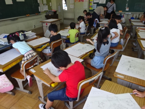 3年生 図工の作品バックを写真にとって先生におくり、互いにタブレット上で鑑賞できるようにしました。