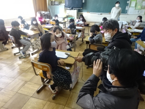 テレビと新聞が1社ずつ取材に2年生に入りました。