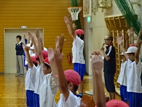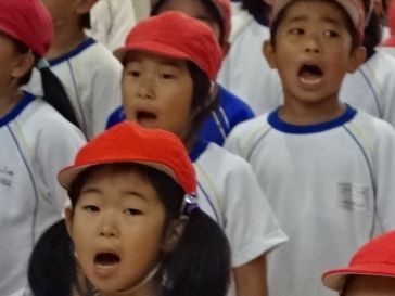 しっかり呼びかけをする1年から4年生の姿が、とっても大きく