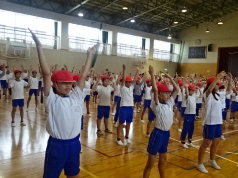 体育委員長をはじめとする体育委員のお手本でラジオ体操