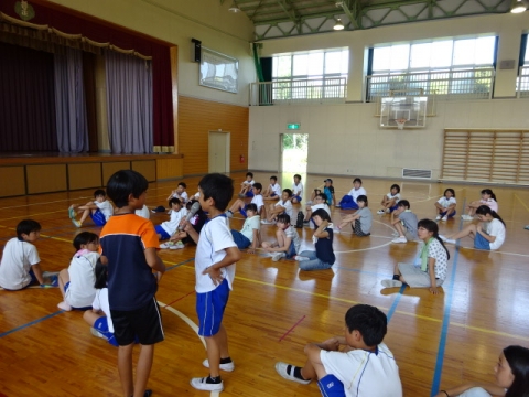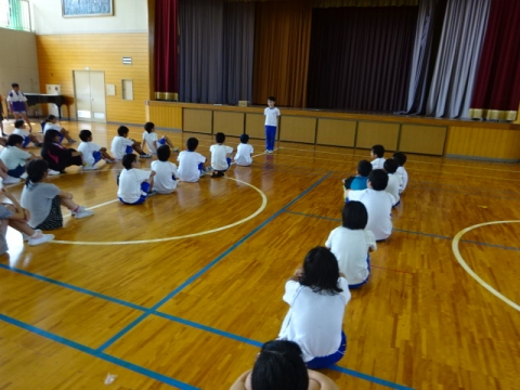 今日は、1年生から4年生までの子どもたちが6年生とお別れ式を行いました。