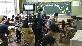 別れの言葉では、5年生も6年生も、しっかりと思いが伝わるように言うことができました。