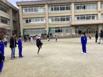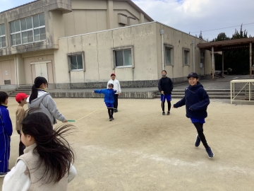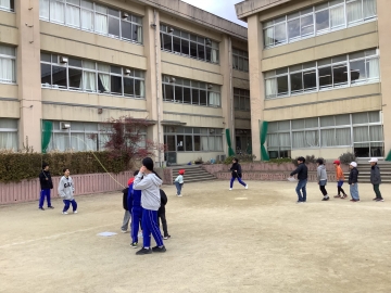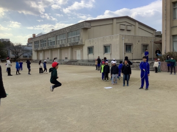 今週から運動場では、来月2月9日(月)に行う大なわ集会に向けて、各縦割り班ごとに大なわ跳びの練習をしています。6年生が大なわを回して、3年生以上が低学年の子どもたちに跳び方を教えながら、跳べた回数を数えていました。どの班も楽しそうに笑顔で跳んでいて、引っかかっても「おしいー!」「大丈夫、大丈夫!」「次は跳べるよー」と声をかけ合っていました。見ていて嬉しくなる光景でした。