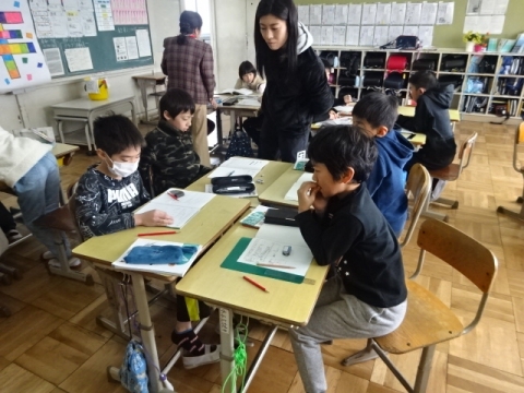 3年生 図工の作品バックを写真にとって先生におくり、互いにタブレット上で鑑賞できるようにしました。