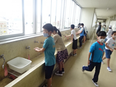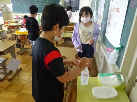 当番や配膳にかかわる児童はアルコールの手指消毒