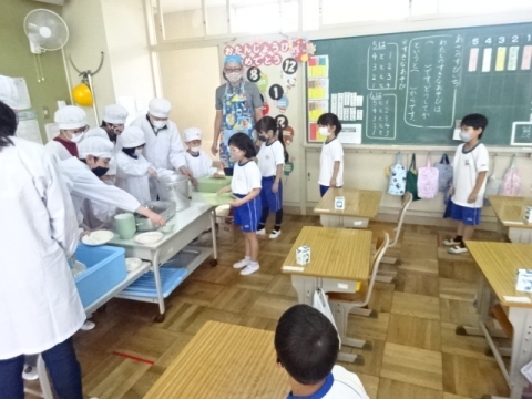 1年生も6年生に助けられながら当番の仕事も開始。