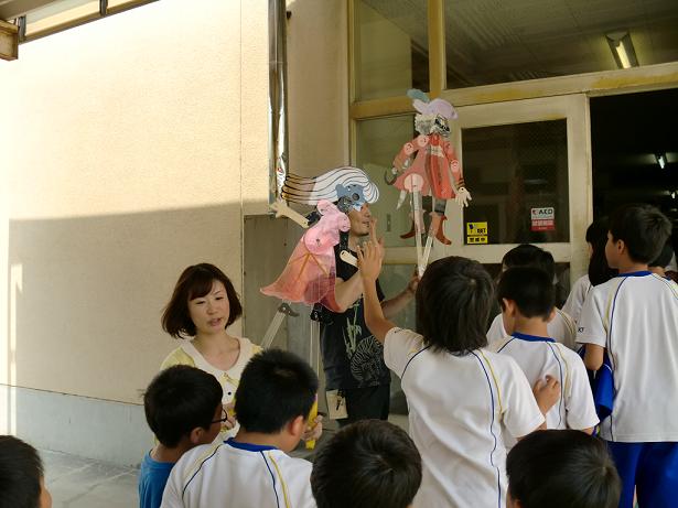 劇の終了後、劇団員のみなさん&影絵の人形さんに、見送ってもらいました。