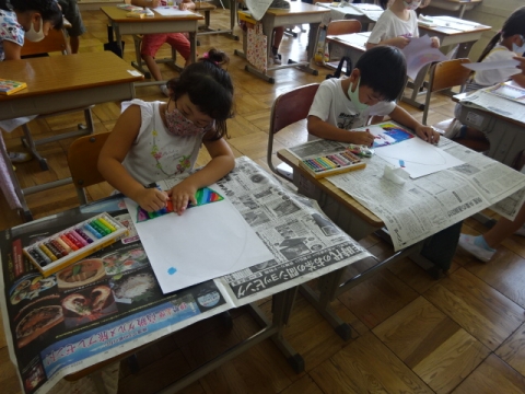 3年生 図工の作品バックを写真にとって先生におくり、互いにタブレット上で鑑賞できるようにしました。