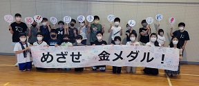 「めざせ 金メダル!」の横断幕にも一人ひとりのメッセージを書いてくれていました。
