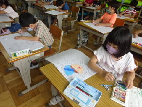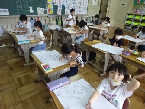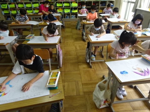 3年生 図工の作品バックを写真にとって先生におくり、互いにタブレット上で鑑賞できるようにしました。