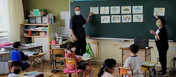 今日はジョン先生が来てくれて4年生の子どもたちに天候の応え方を教えてくれました。