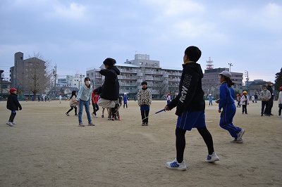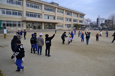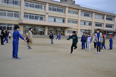 2月12日の縦割り班大繩大会に向けて昼休みに各班が練習をし