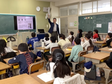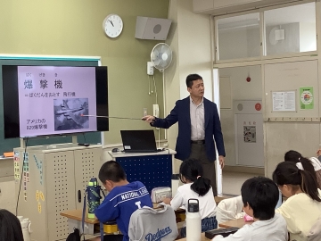 昨日の3限目、3年生を対象に平和学習を行いました。講師に樋口浩一郎先生(元養正小校長)をお招きし、津市での空襲の話や戦争の時代背景等を写真や絵で分かりやすく話をしていただきました。3年生では国語で「ちいちゃんのかげおくり」を学習しています。物語に出てくる空襲や焼夷弾、防空壕などについても詳しくお話をしていただいたことで、戦争を二度と起こしてはいけないとの思いを強く持つことができたと思います。保護者の方にもたくさんお越しいただき、ありがとうございました。