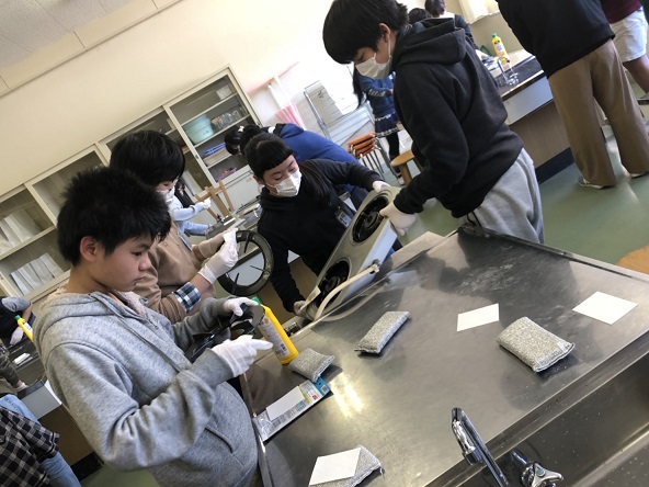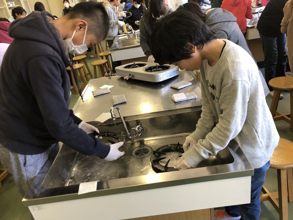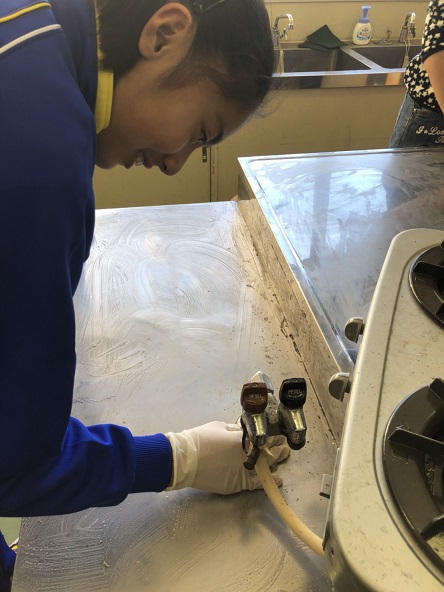 まずは、家庭科室から。ガスレンジも取り外して徹底的に磨きます!