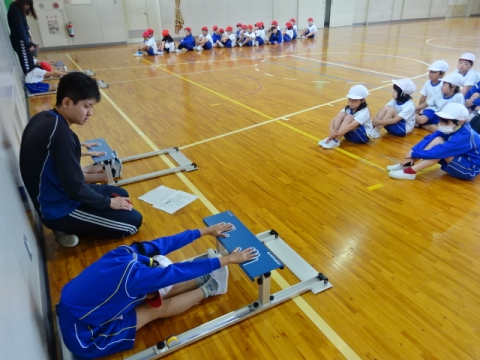 明日の卒業式の会場準備を4年、5年が作ってくれました