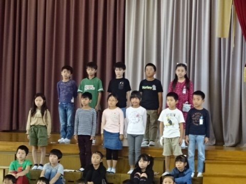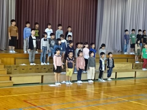 月曜日のお別れ式に向けて、1年から4年生が呼びかけや式の流