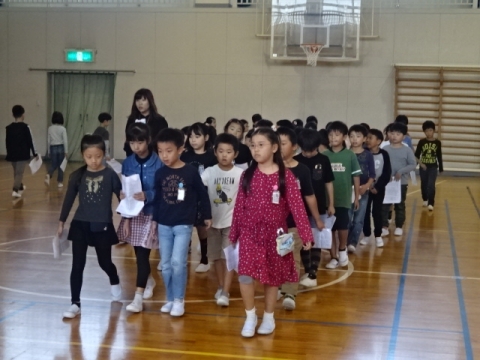 卒業式には出席しない1年生から4年生が、6年生とのお別れ式を