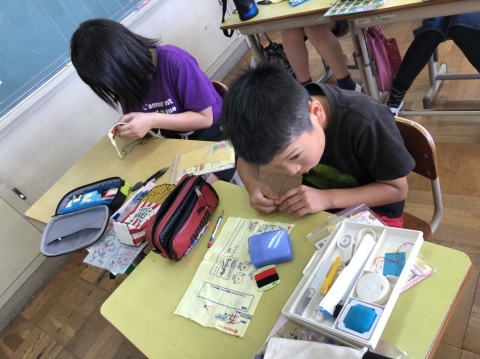 3年生 図工の作品バックを写真にとって先生におくり、互いにタブレット上で鑑賞できるようにしました。