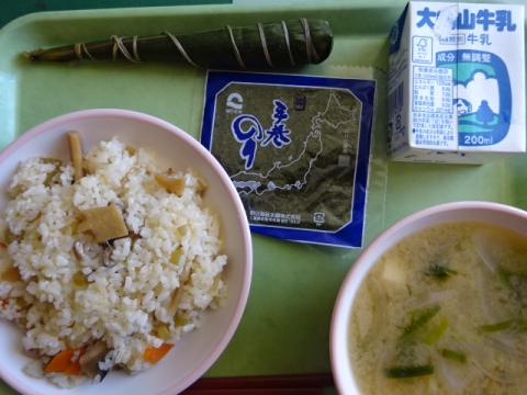 きょうは行事食で、ちょっとおくれてはいますが、こどもの日のメニューでした。